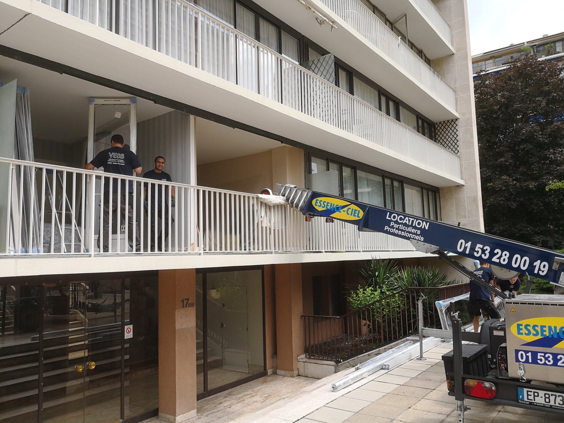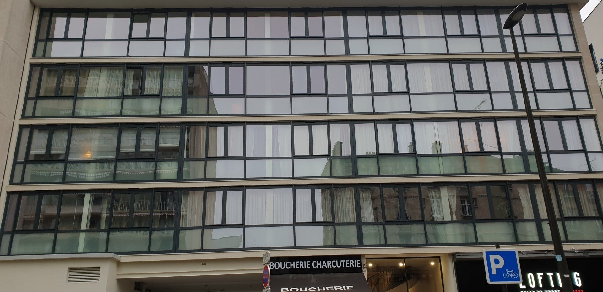 Nous avons réalisé le remplacement de la façade entière de l'immeuble au 105-105bis, rue Neuve Saint Germain à Boulogne Billancourt. Pendant deux mois et toujours en milieu occupé nous avons installé seize cadres (la plupart long de sept mètres) sur quatre étages. Les ouvertures, coulissantes a translation, permettent a la fois d'ouvrir la fenêtre en oscillant et de la coulisser pour une ouverture totale sans prendre de la place a l'intérieure du logement.